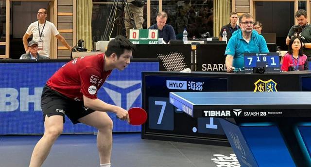 经历了德甲的初段适应后,樊振东已经熟悉了这里的乒乓球环境,今天的比赛进入状态很快,本局局中阶段,小胖连续反手长球,效果不错,小分7-3领先。