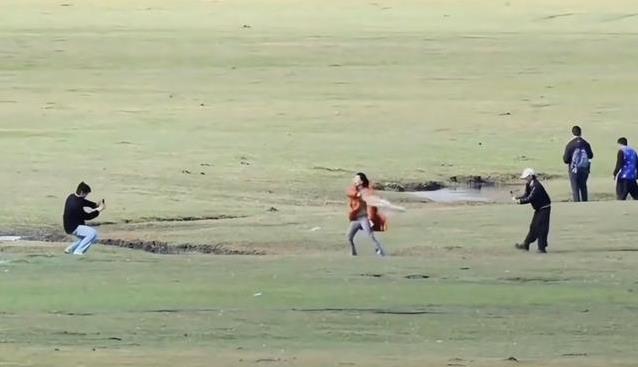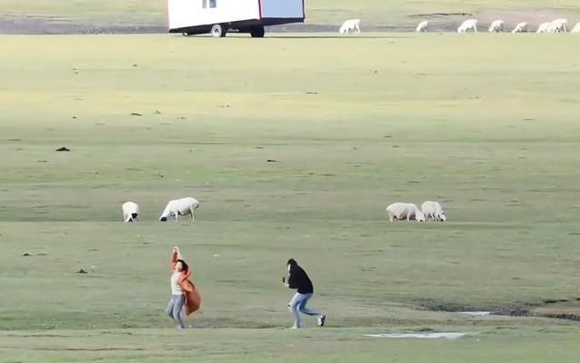 何赛飞老师完全颠覆了大家的印象。谁能想到这位艺术家到了草原就放飞了自我?海拉尔已经冷得不行,她裹着长羽绒服,还围着围巾。可一看到绿油油的草原和白花花的羊群,她立马把围巾一摘,在草地上转起了圈。转着转着还不过瘾,干脆撒开腿跑了起来,笑得像个孩子。