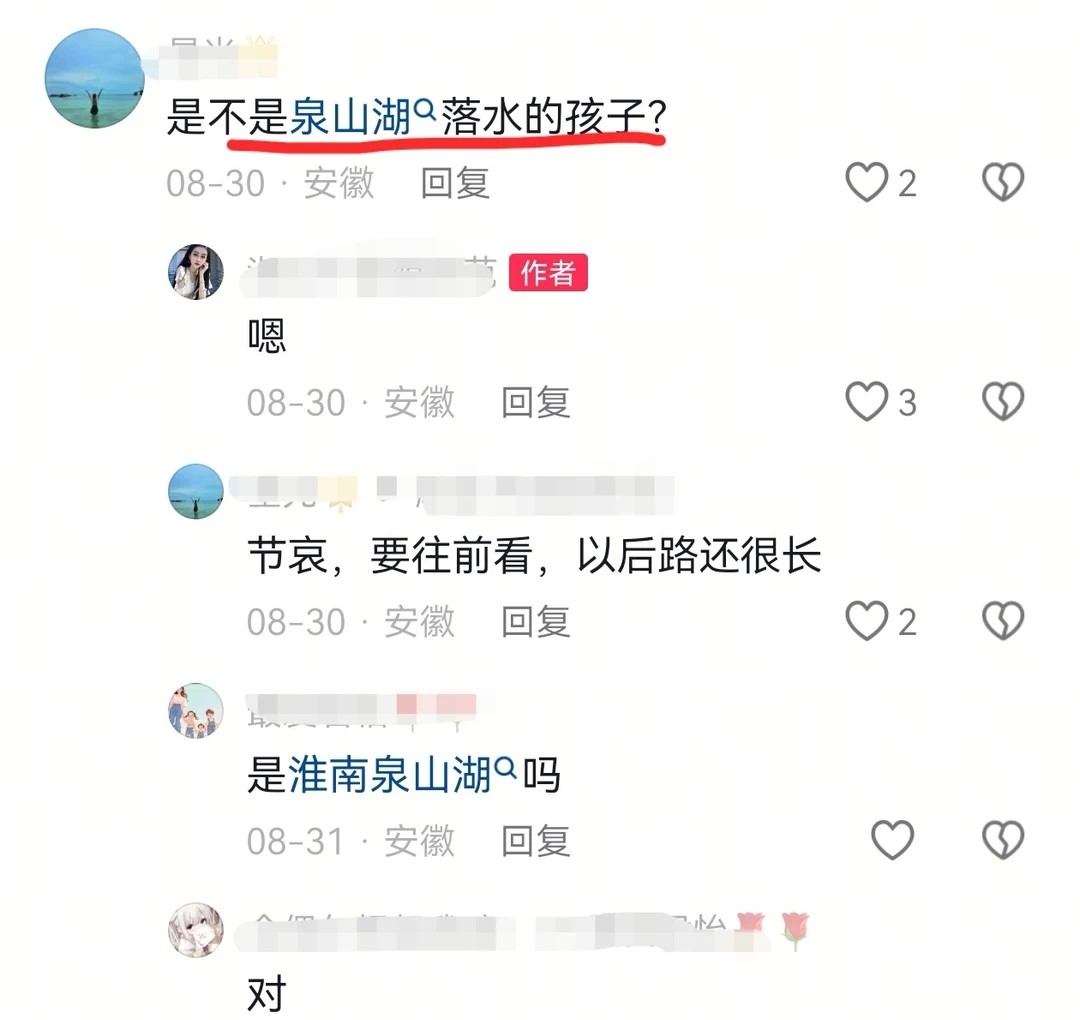 据当地的网友透露,当天两点多的时候,一行三个孩子下水游泳,旁边有不少游泳爱好者劝说,不让孩子下水,而且也没有带防护设备,没想到下了泉山湖就出事了,被卡在水底的石头缝中。