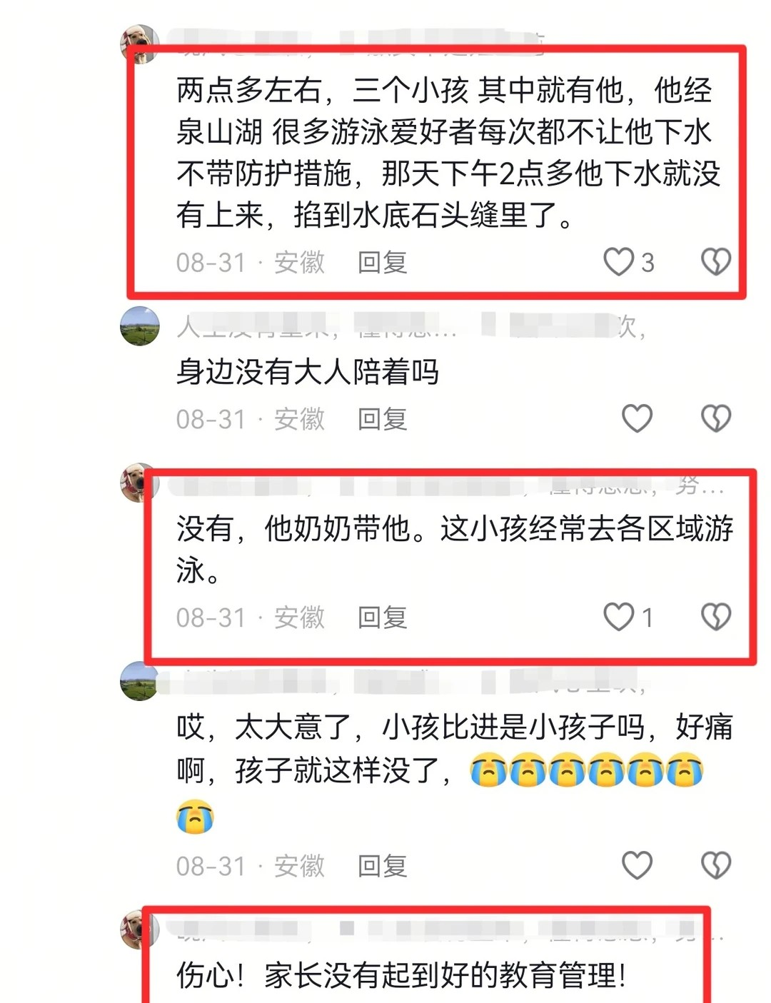 而这个孩子是奶奶带的,平时也经常去各个水域游泳,所以知情的网友认为,家长没有尽到教育责任。